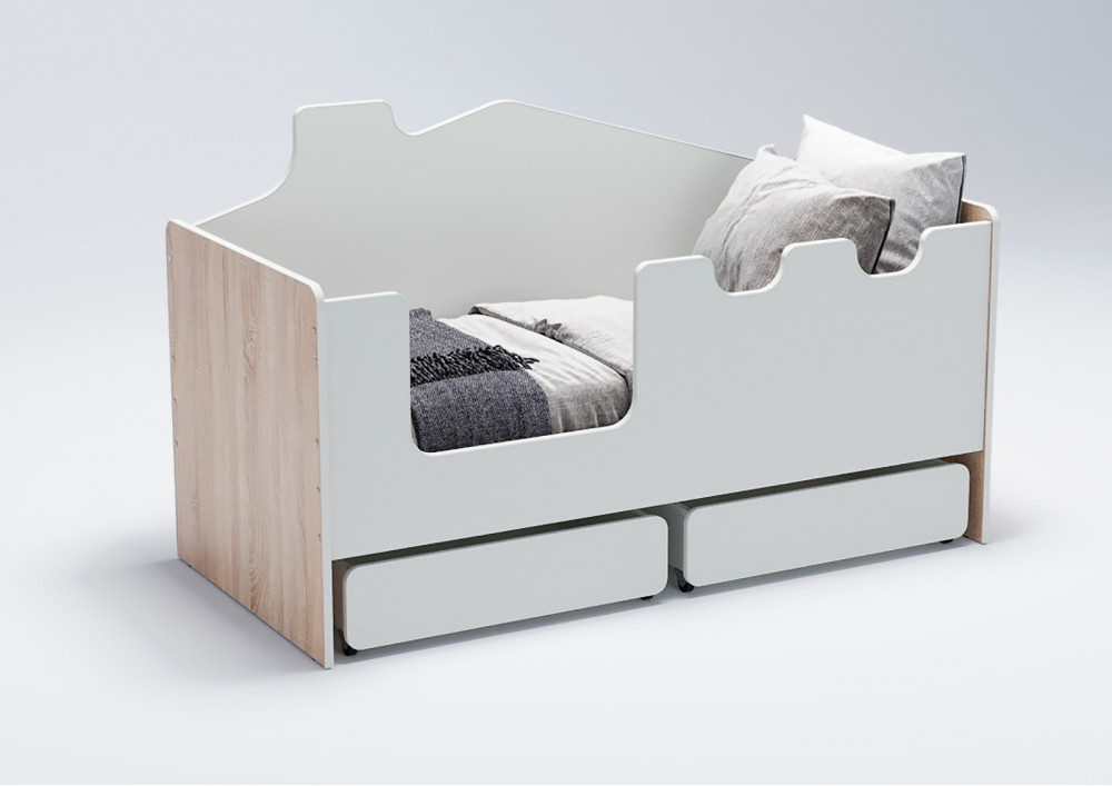 Безопасность ребенка во время сна и игр на кровати - это приоритет. Высокие безопасные борта высотой 521 мм обеспечивают надежную защиту от падений, а отсутствие острых углов и мягкий противоударный кант повышают безопасность использования. Стилизованный под домик задний борт создает атмосферу игры и фантазии, стимулируя развитие ребенка.