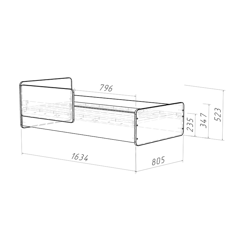 Защита от травм: Кровать не имеет острых углов и обработана мягким противоударным кантом, что предотвращает возможные травмы и делает использование кровати безопасным для детей.
