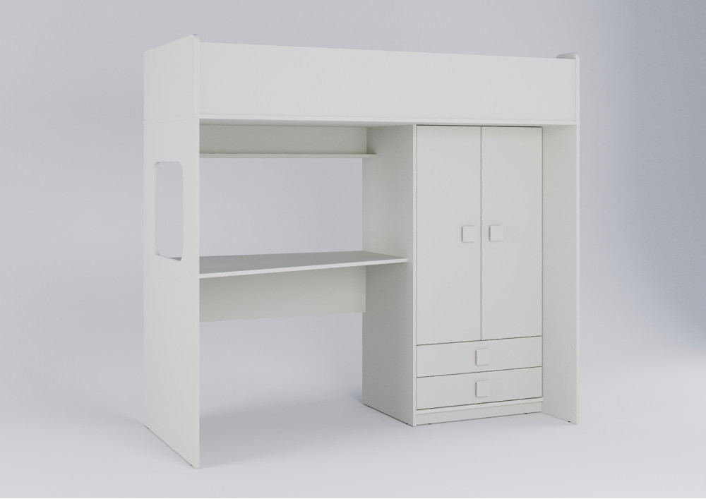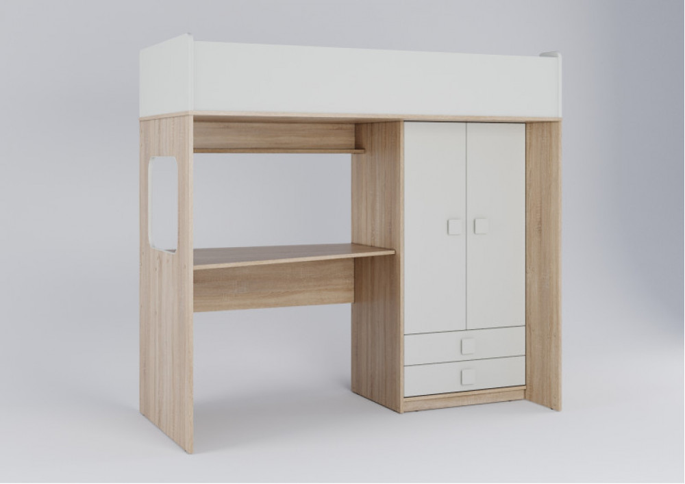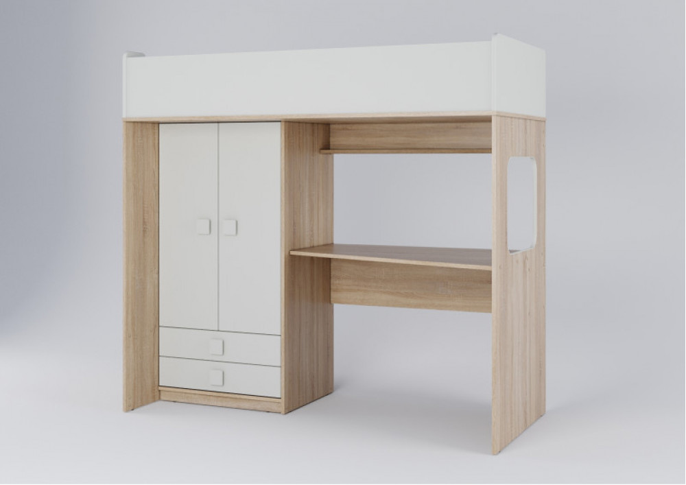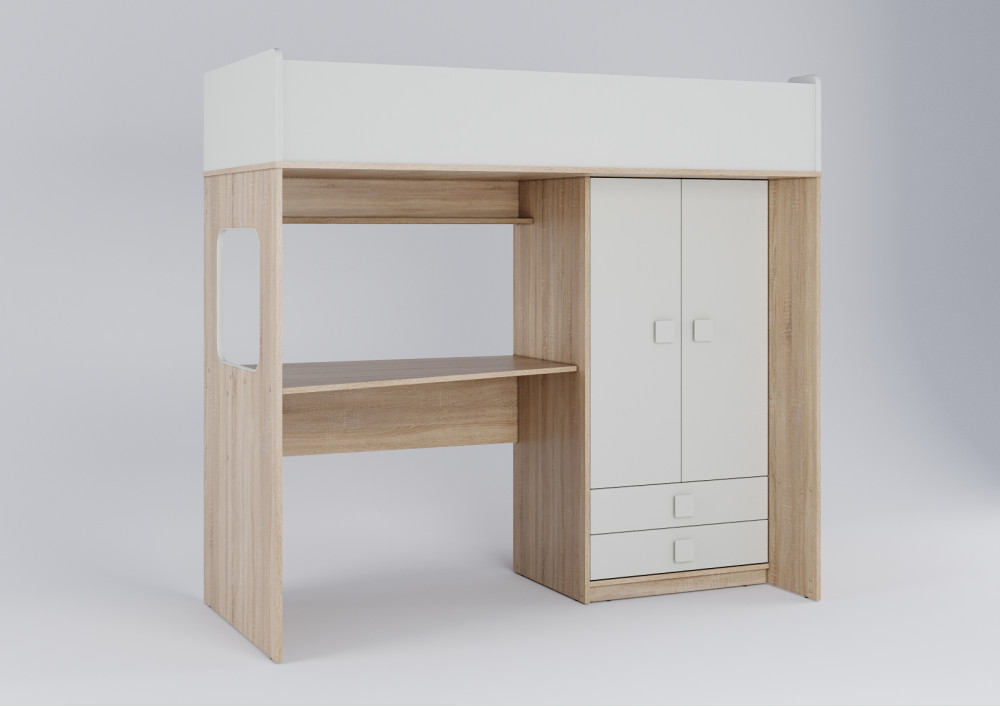 Учебная зона со столом под спальным местом открывает возможности для письменных работ,а также здесь удобно расположить ноутбук.