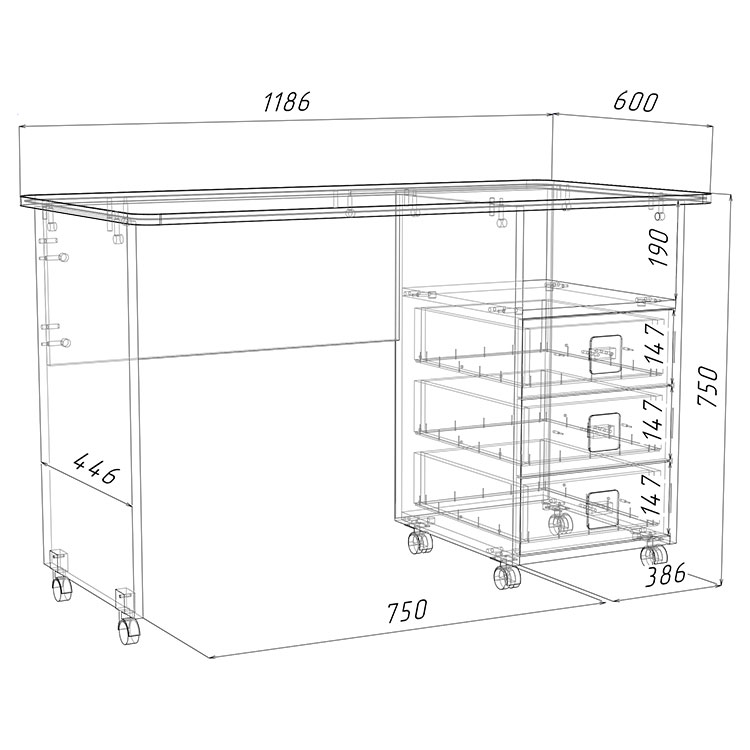 Три выкатных ящика стола обеспечат удобное хранение канцелярии,письменных,учебных и прочих принадлежностей.Над ящиками открытая полка для мелочей,которые будут всегда под рукой.
