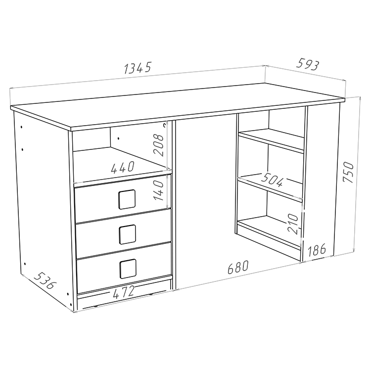 Три выкатных ящика стола обеспечат удобное хранение канцелярии,письменных,учебных и прочих принадлежностей.