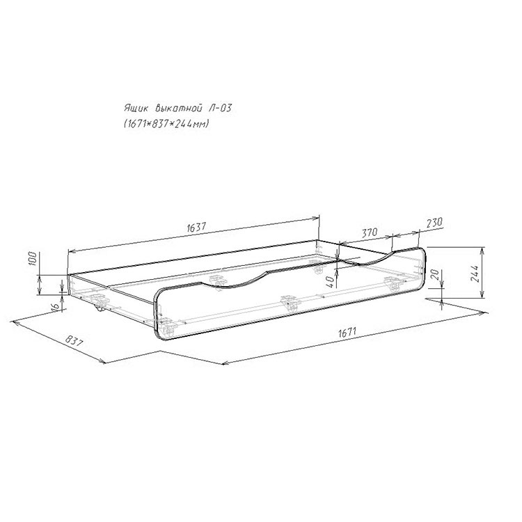 Длина/Ширина/Высота (мм) | 1671 × 837 × 244 |
