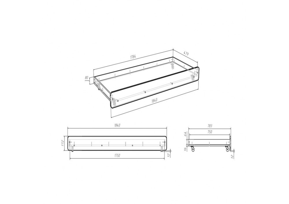 Длина/Ширина/Высота (мм) | 1840 × 784 × 184 |