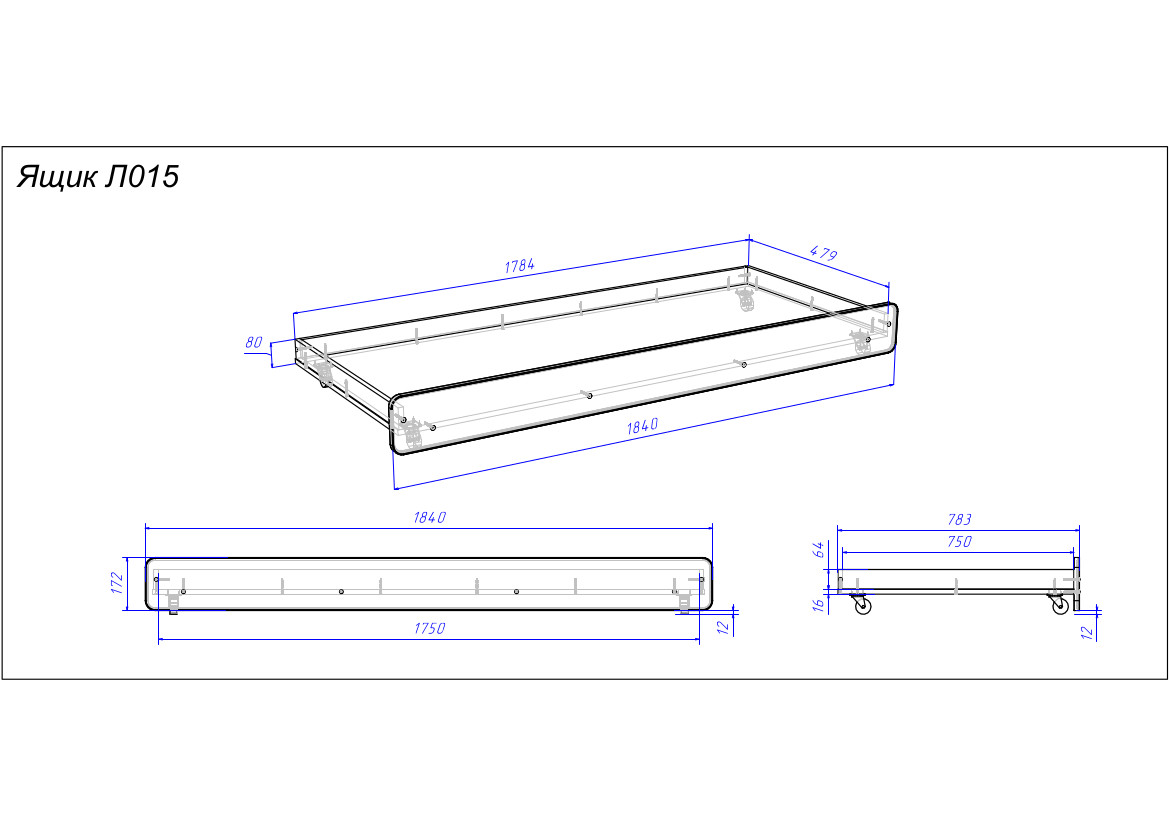 Для данного ящика использованы усиленные металлические колёса. Благодаря колёсам ящик удобно выкатывается и закатывается, благодаря тормозам ящик остаётся недвижим, например,во время ночного сна.