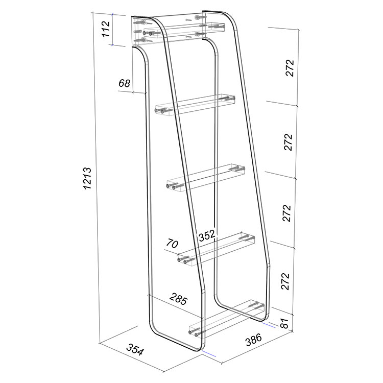 Стеллаж состоит из трех полок, 2 из которых разделенны на две секции – удобно для поддержания порядка и сортировки предметов.