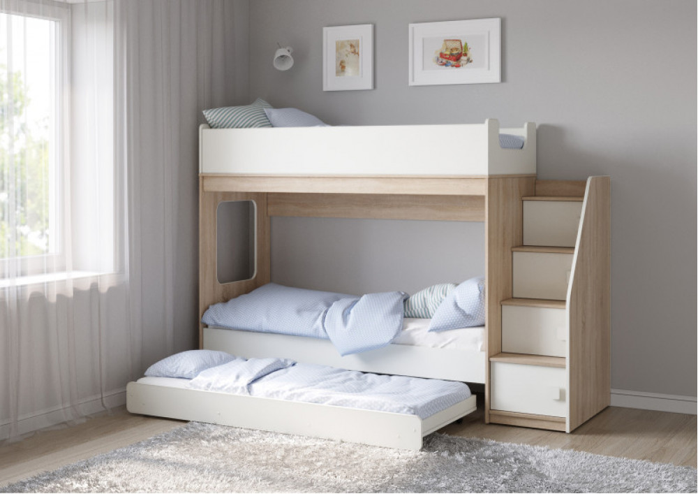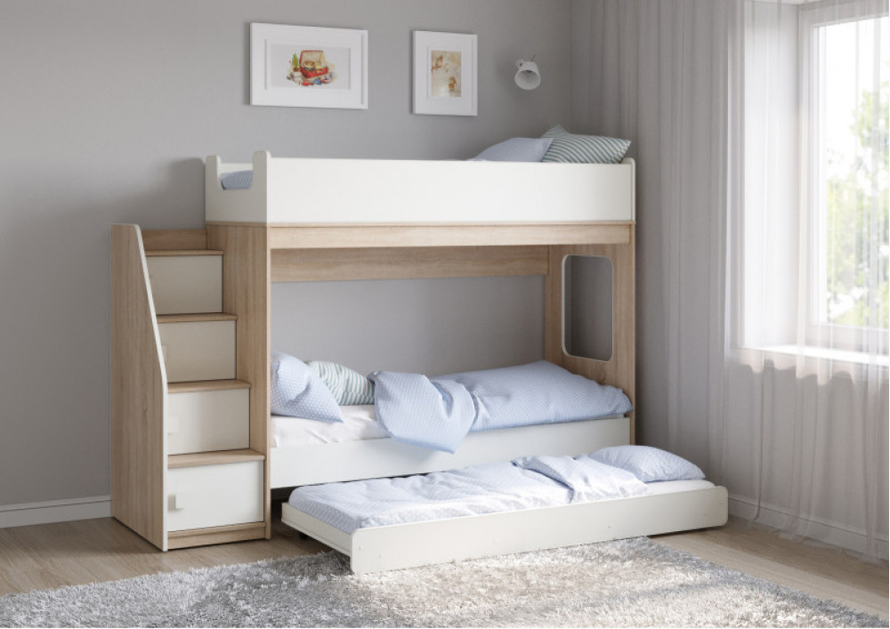 Трехъярусная кровать Легенда D602.3 с ящиком - уникальный комплект для троих детей!
