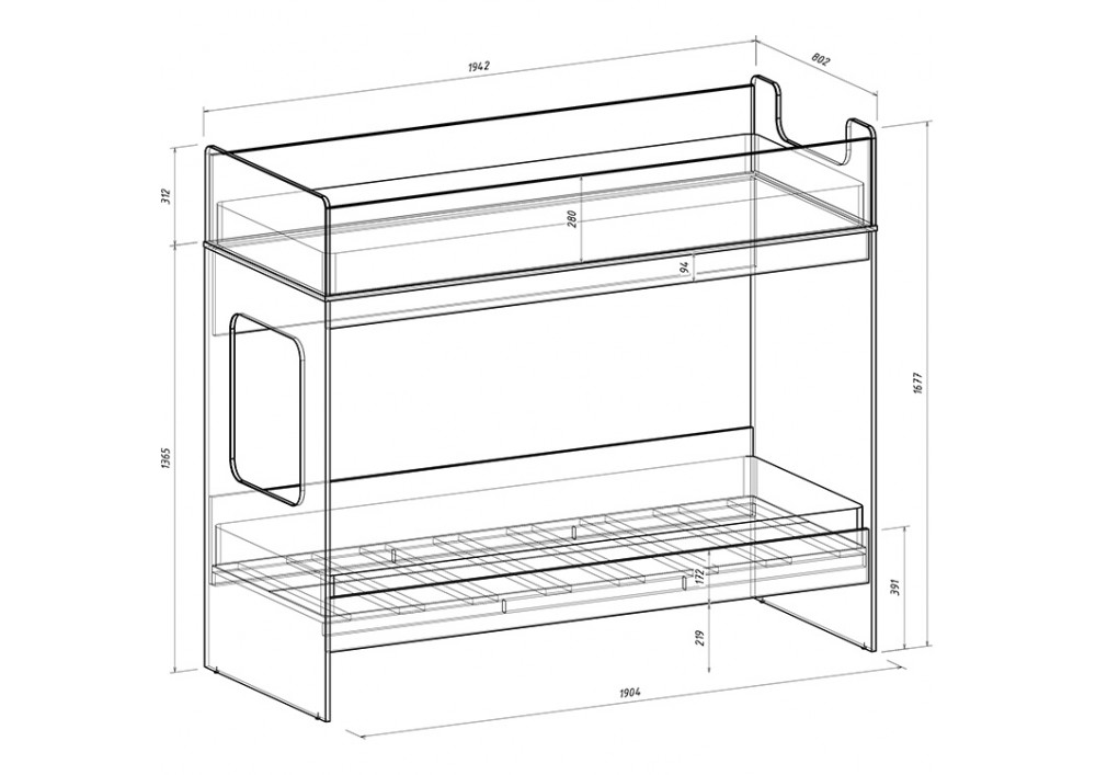 Классическая детская двухъярусная кровать с двумя параллельными спальными местами размером 1900х750 или 1750х750.
